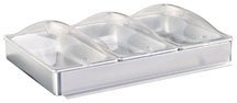 Third Size Inset Accessory Pack w/Clear Lids. Accessory for BroilKing Professional Standard & Grand/Jumbo Size Warming Trays & Buffet Servers. Includes three Model SPL-3P third size stainless steel chafing pans with clear polycarbonate lids PLUS one PS-NBS Pan Holder. Lids have utensil slots. One of Model INBS-3P will fit on NWT-10S, NWT-1B, PWT-1S*, & PWT-1B* Warming Trays. Two of Model INBS-3P will fit on MLW-2, NWT-40S & PWT-40S Warming Trays.
